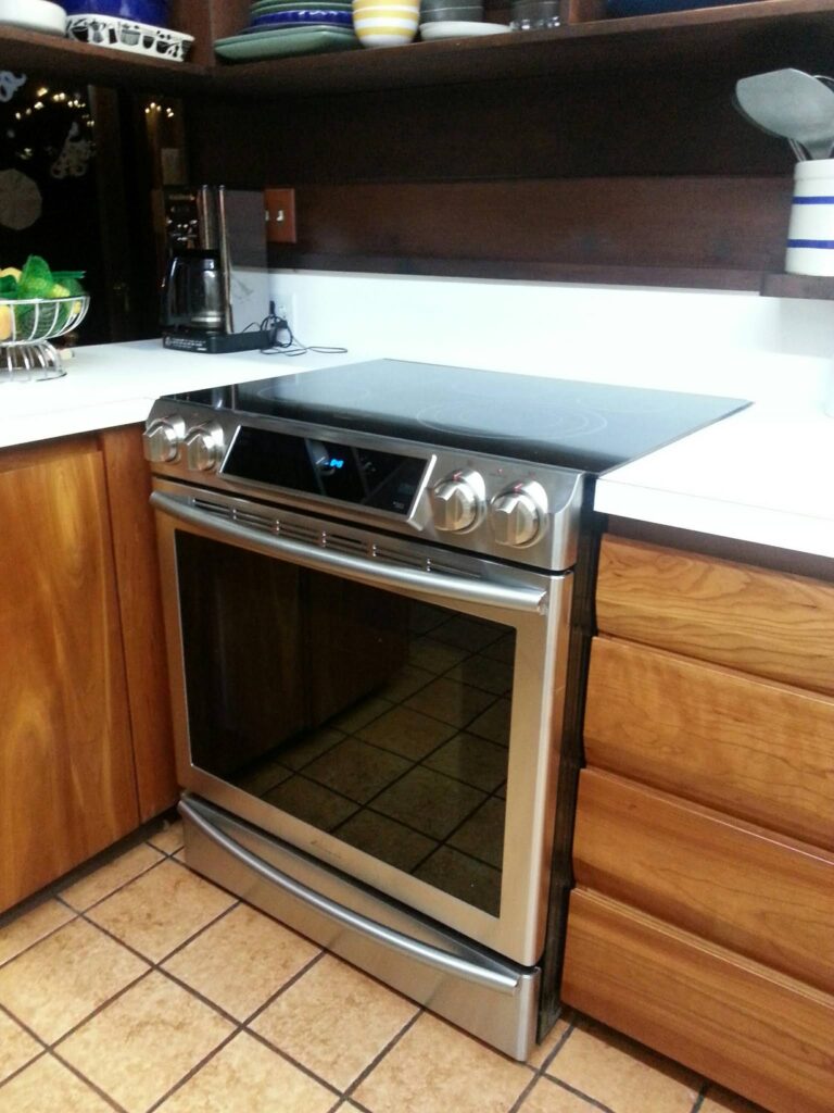 • Electric oven died in August 2014 — replaced with a Samsung glasstop electric oven (Samsung NE58F9710WS) from Sears. Manual.