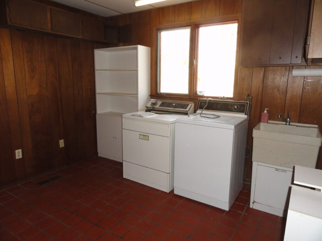 The laundry room was added in a significant remodel and expansion (1968), along with the back bathroom & the hallway adjoining both, and the two additional bedrooms and the hallway connecting them to the living room & the main hallway.