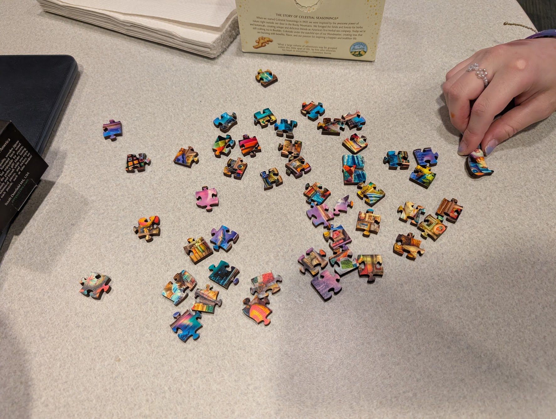 I think it’s fair to say that the decline in democracy in this country has made it difficult for me to do jigsaw puzzles. But Ash and I still manage to knock out a small one periodically. The small puzzles from Zen are very doable even in a highly distracted mindframe. “Winter Reading Nook” is a work by Aimee Stewart, who I’ve seen on a lot of puzzles. This particular puzzle was a 47-piece teaser, available from Zen Puzzles.