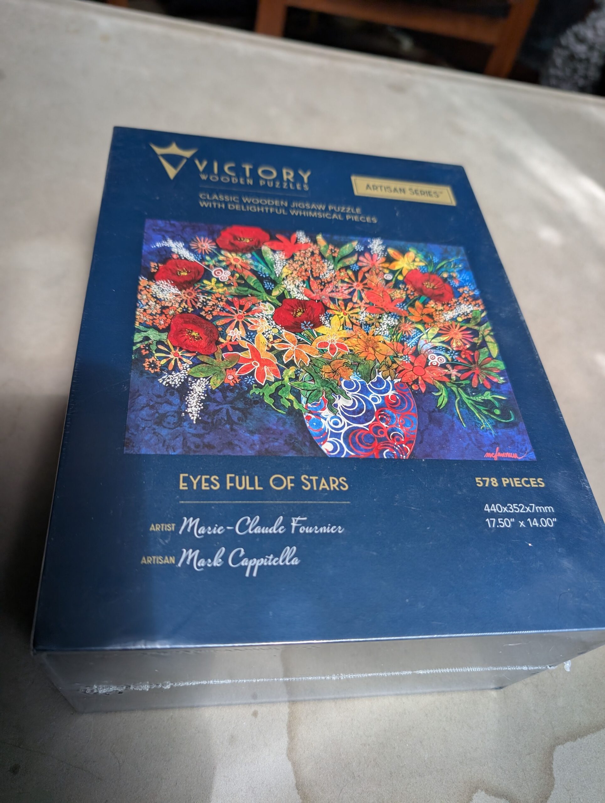 578 pieces, 440x352x7mm (17.5″ x 14″). Canadian artist Marie-Claude Fournier. Victory puzzles, in their “Artisan series”. Puzzle cut design by Mark Cappitella.