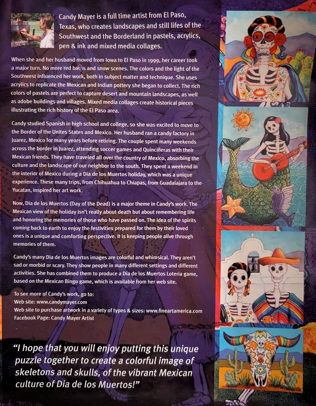 Loved this “Dia de los Muertos” puzzle from Hennessy Puzzles (art by Candy Mayer). I love Hennessy’s whole collection and would happily do all of them! But I continue to work my way through a backlog. Still, this one is a keeper.