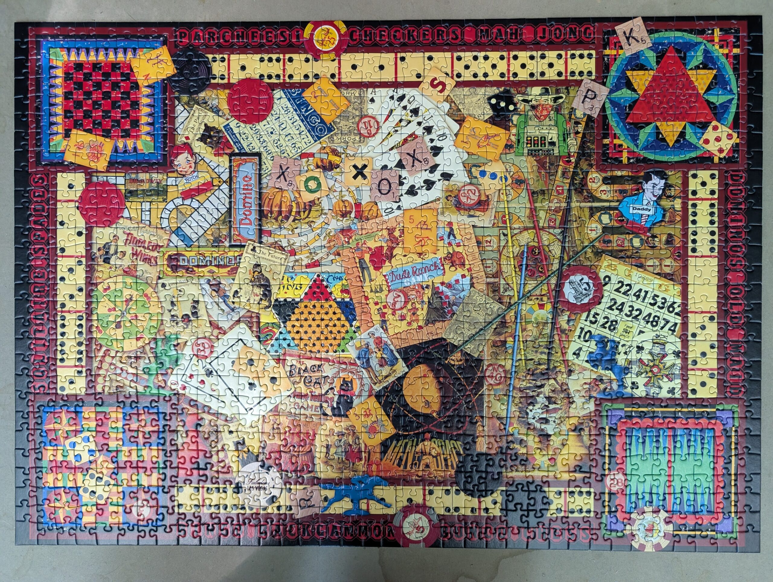 Another puzzle from my stash! “Vintage Games”, image copyright 2014 Kate Ward Thacker / Next Day Art, published by Ravensburger as a 1000-piece puzzle (No. 19 406 3). This one was such a busy collage-style image that, although I was attracted to the art, I postponed it for a long time … but once I […]