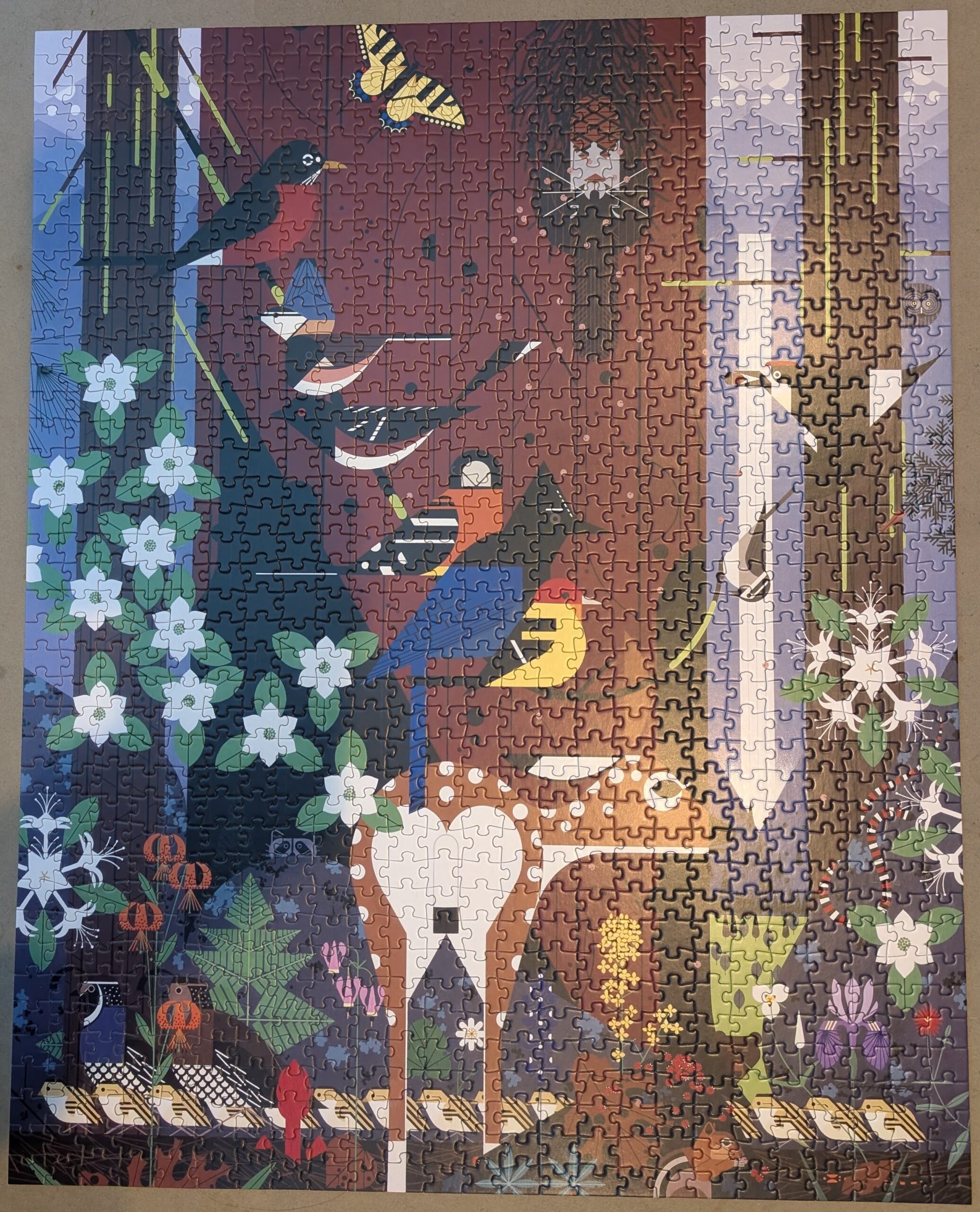 Gorgeous artwork — “Stranger by the Lake (Bare Ass Creek)” by Ken Gun Min, which made for an amazing puzzle from Kinstler. What a fun puzzle! Also, pretty challenging! Lots of little colored or patterned sections, but so many that it was a little too busy for me to solve in a very organized fashion. […]