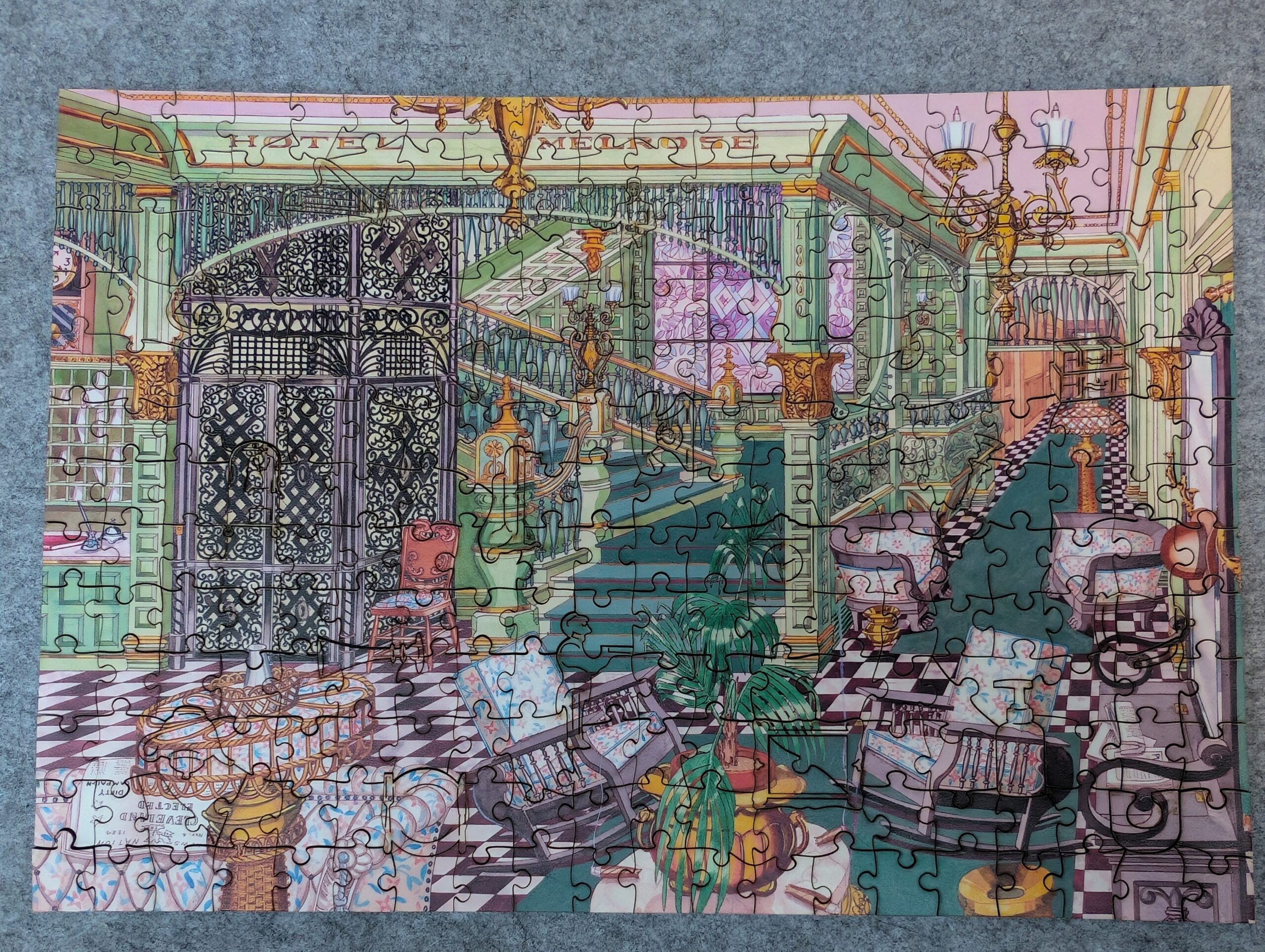 Via Hoefnagel, I got this laser-cut 152-piece (“A4 size”) puzzle from “Apro Vision”, which appears to be one of the randomly generated names that Chinese laser cutters create to sell on Amazon. It’s a pretty cool and tricky image — many little doors in various sizes, plus some gears, and trees in various teacups (surrealist […]