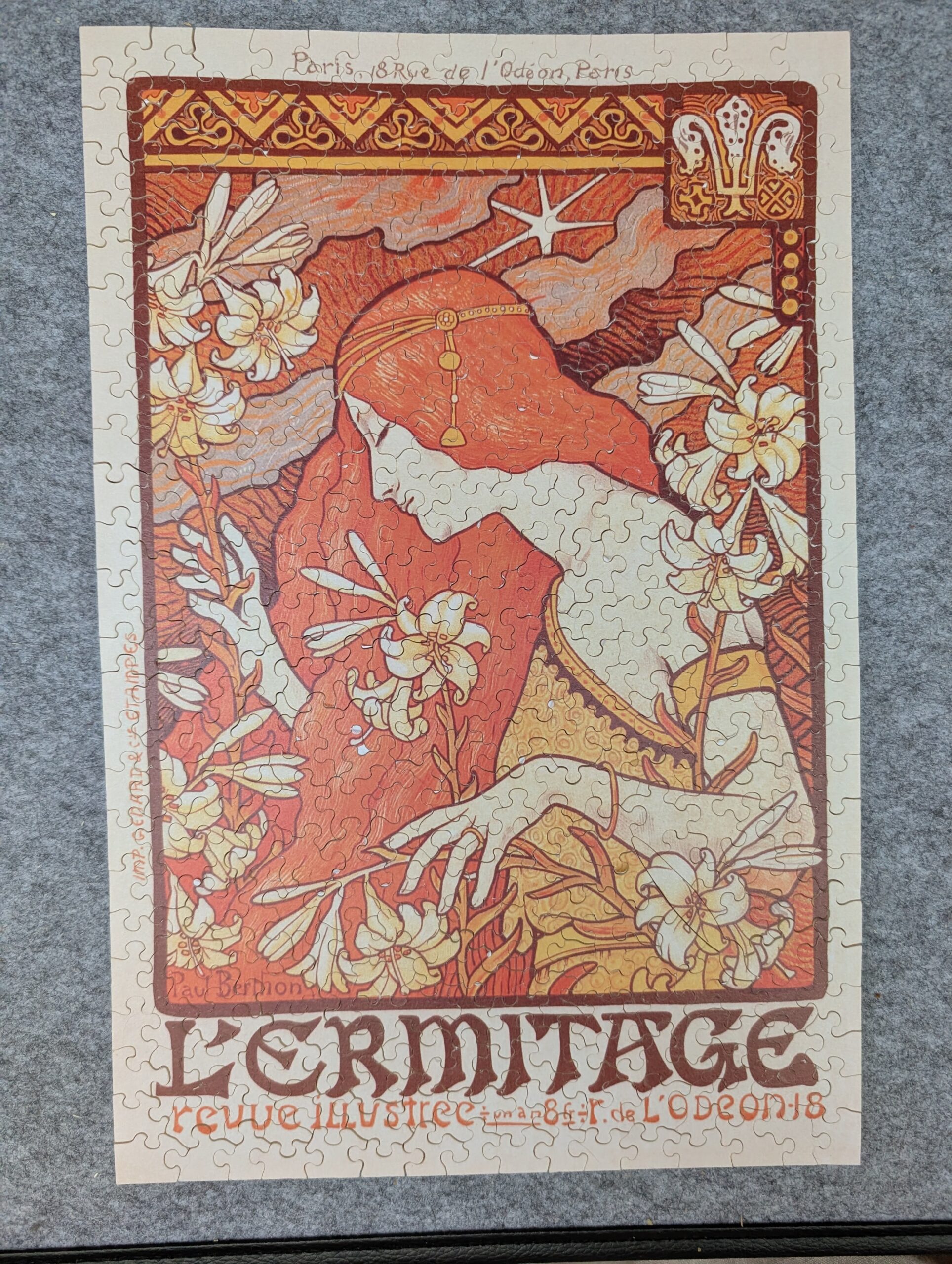 I love the Sr. B hand-cut puzzles, so it’s a real treat to get one from Hoefnagel. This one is “L’ermitage“, an 1897 Art Nouveau piece by Paul Berthon (1872-1909), used as a poster for the revue L’ermitage. The original seems to be in the Davis Collection at Los Angeles County Museum of Art. The […]