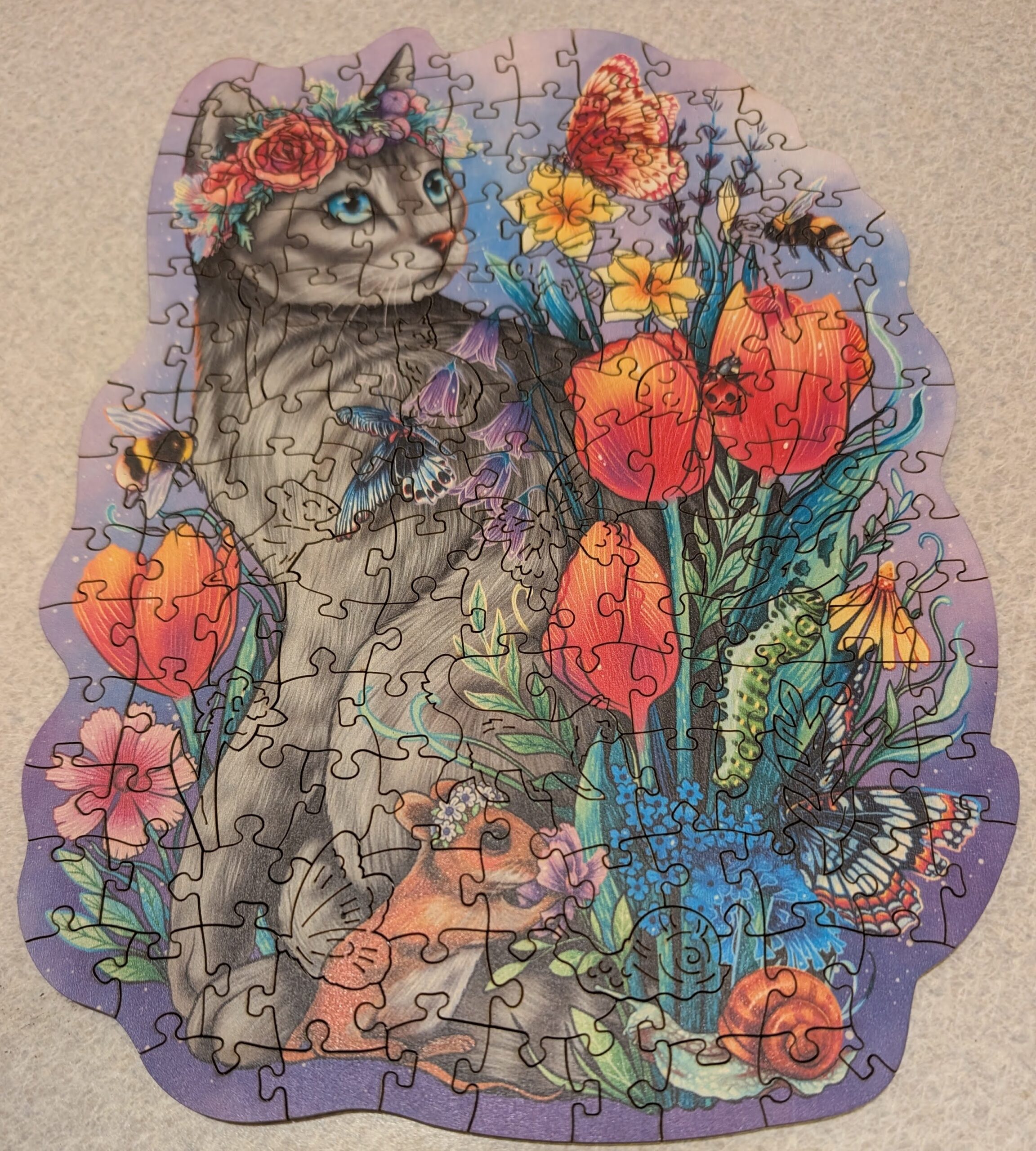 Ash and I knocked off another small Ravensburger wooden (laser-cut) puzzle, cat themed! The whimsies are actually quite nice.