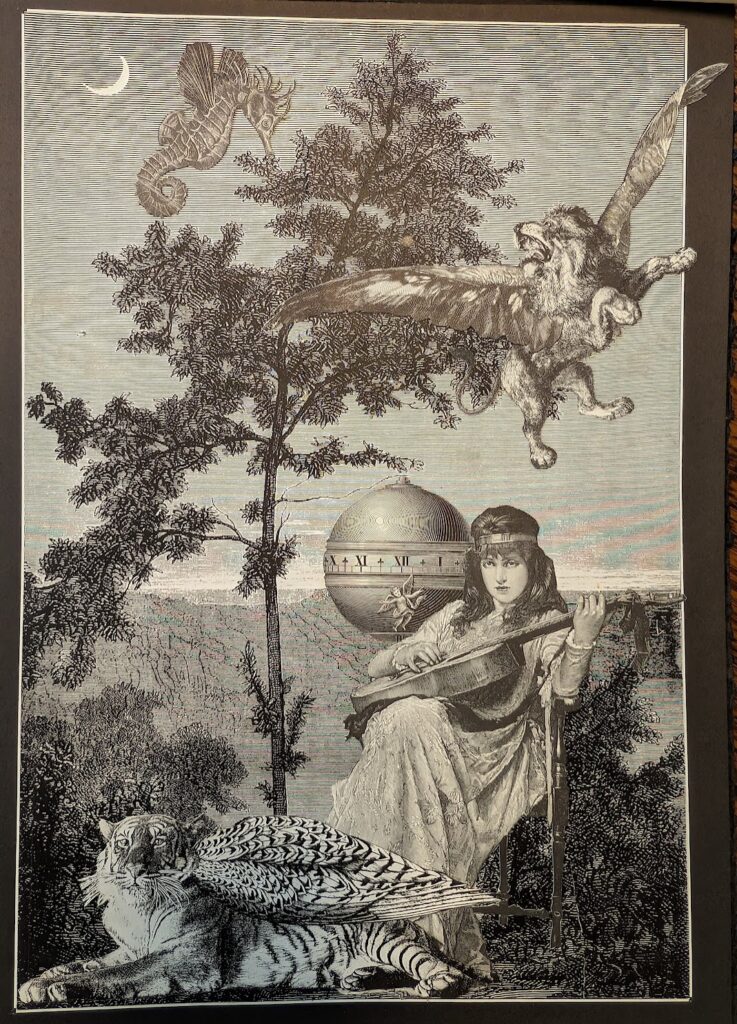 “Music Has Charms …” 1990 collage by Freddie Baer